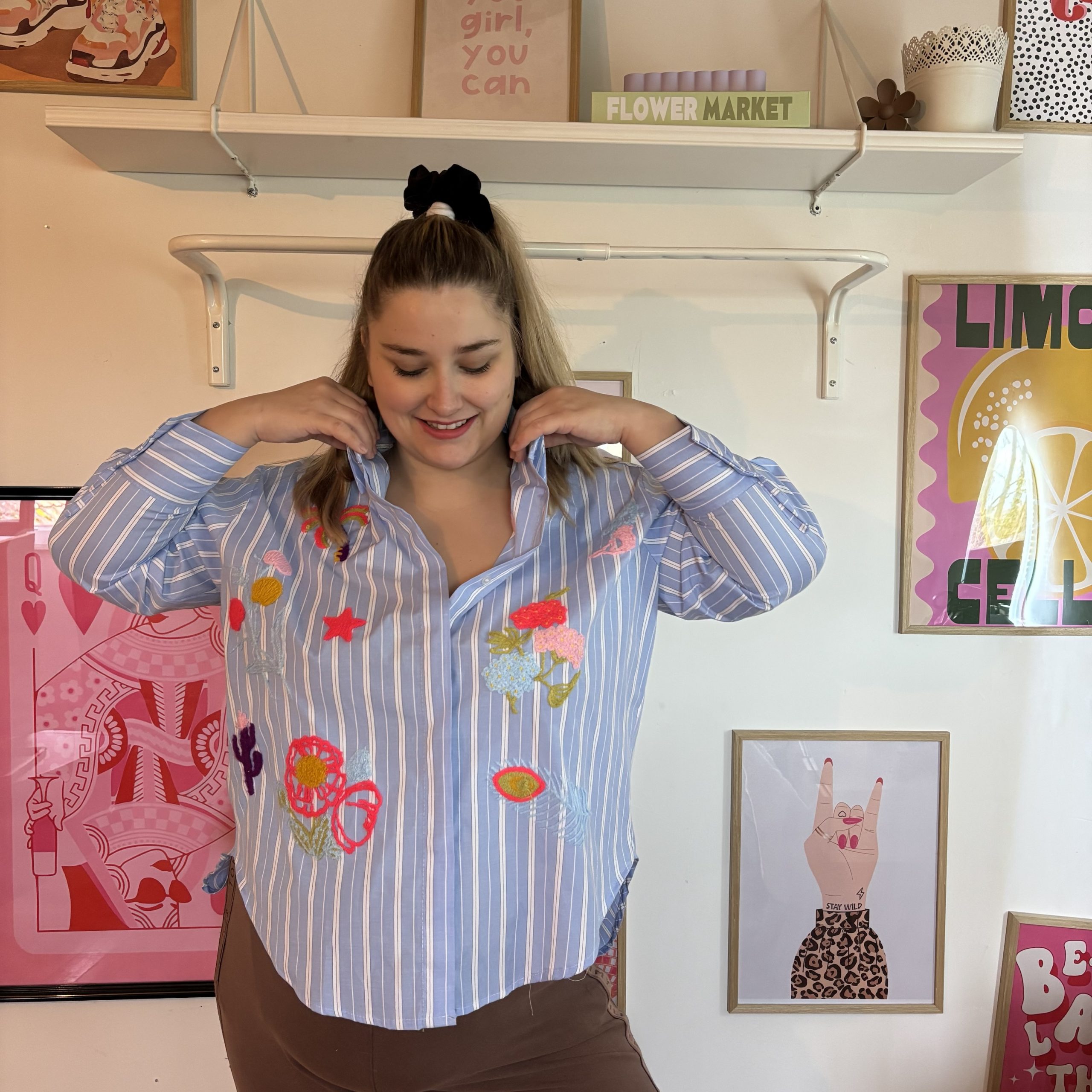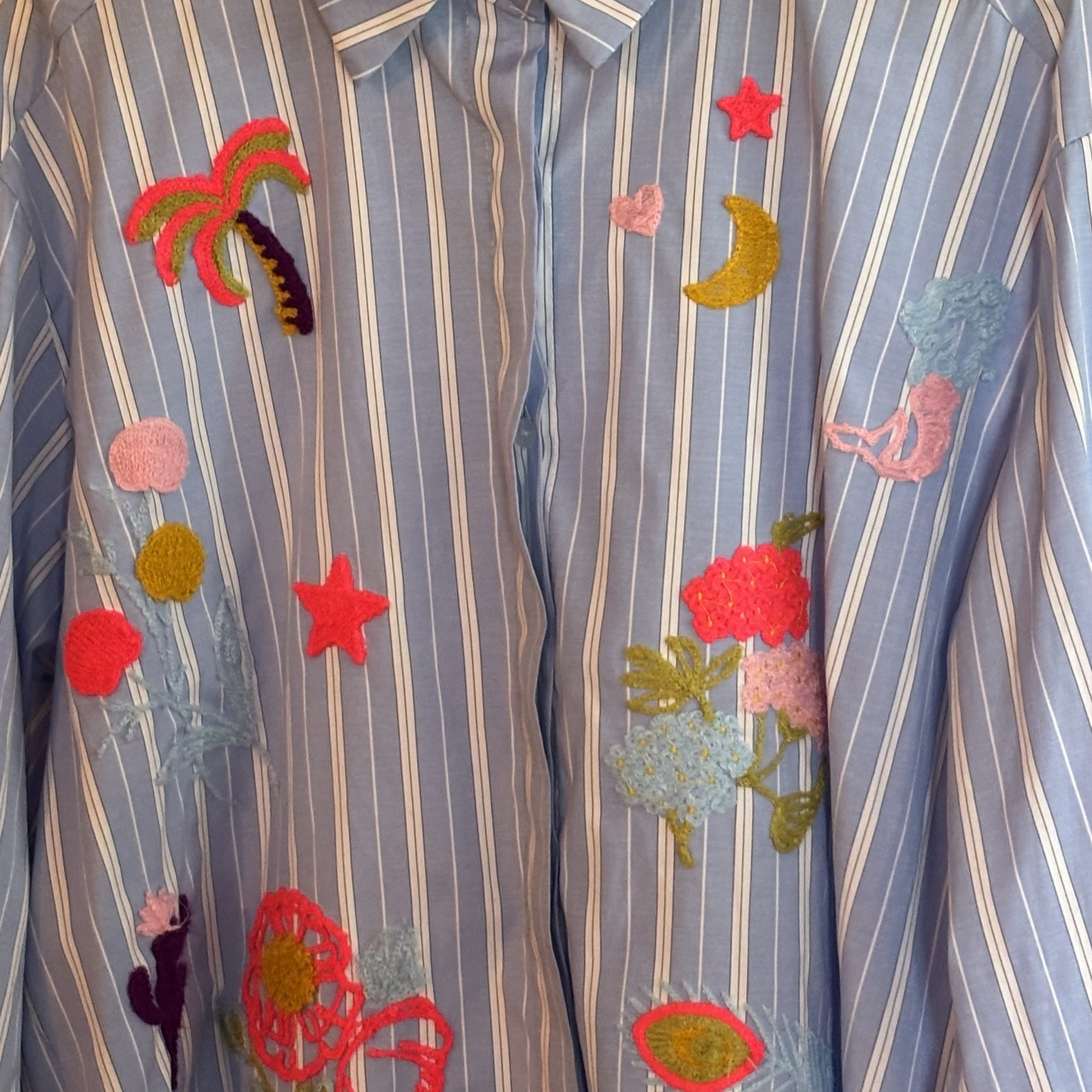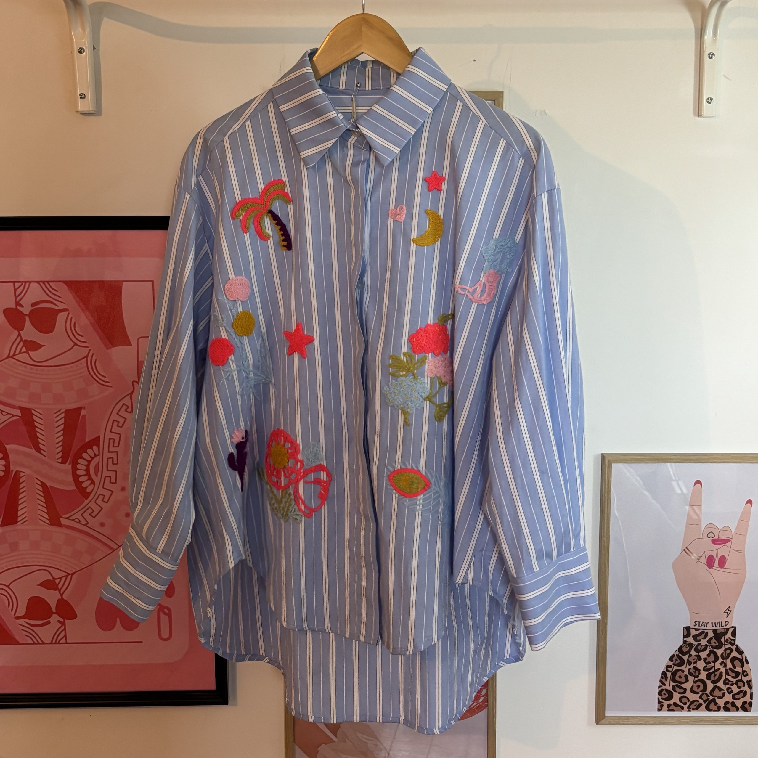 La chemise Alex rayée à broderie est une pièce élégante et facile à porter. Confectionnée en coton 100 % et fabriquée en Italie, sa taille unique du S au XL s’adapte à différentes morphologies pour un style à la fois chic et décontracté.