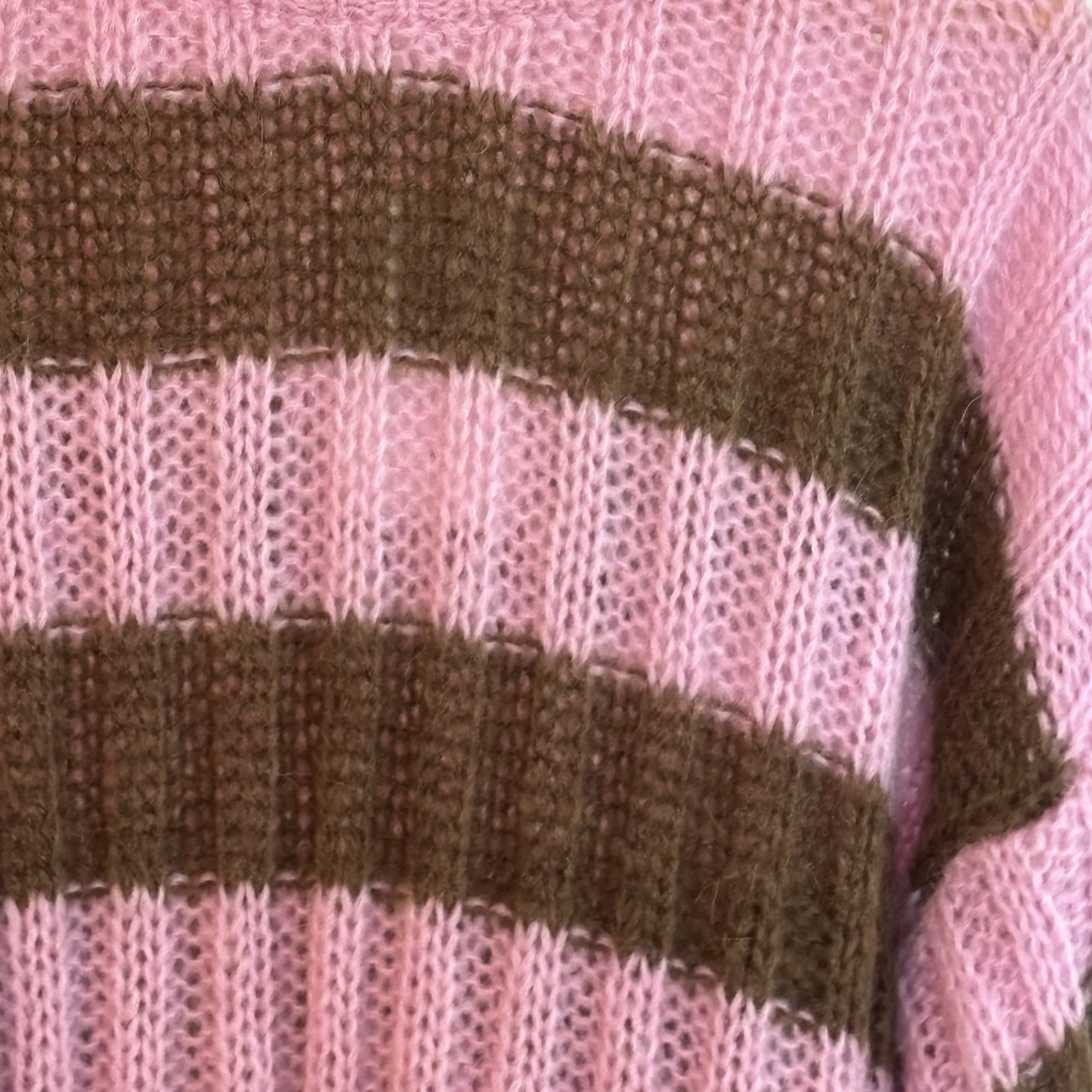 Le pull rayé Fred séduit par son jeu de rayures marron et rose et sa matière douce et moelleuse. Confortable et fabriqué en Italie, il est proposé en taille unique pour un style cosy et tendance.
